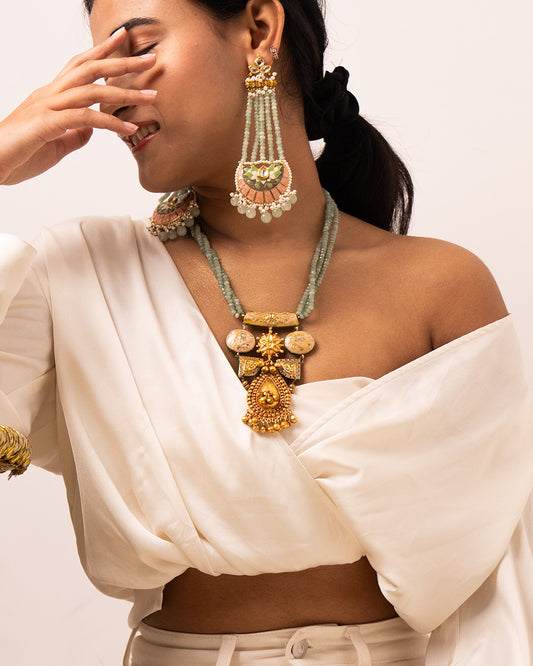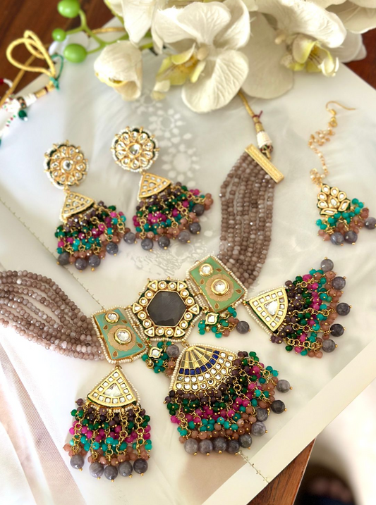 Introducing an exclusive collection by Nidhita Goel: each design is one-of-a-kind, meticulously crafted with semi-precious stones. Embrace uniqueness with our limited edition pieces, each a testament to individuality and style.