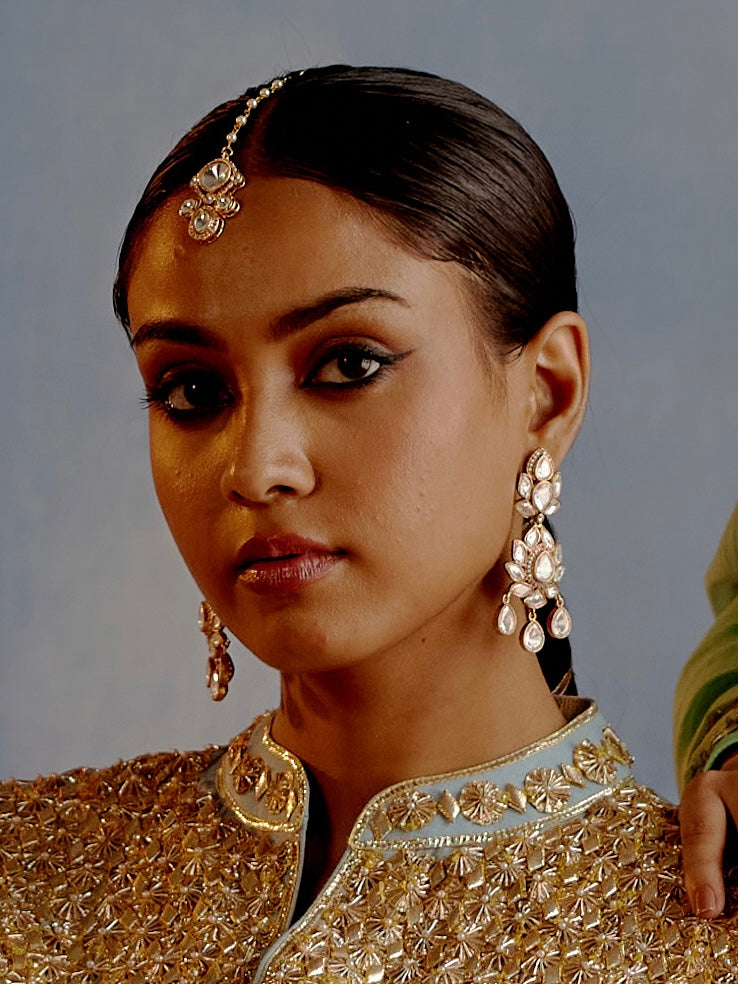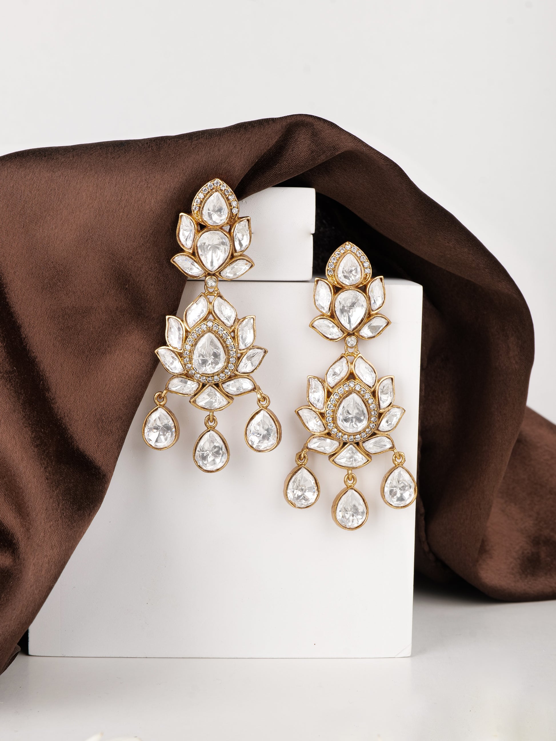 Fine quality Mossanite polki earrings with Cubic zircons, set in base metal with 18k gold plating.