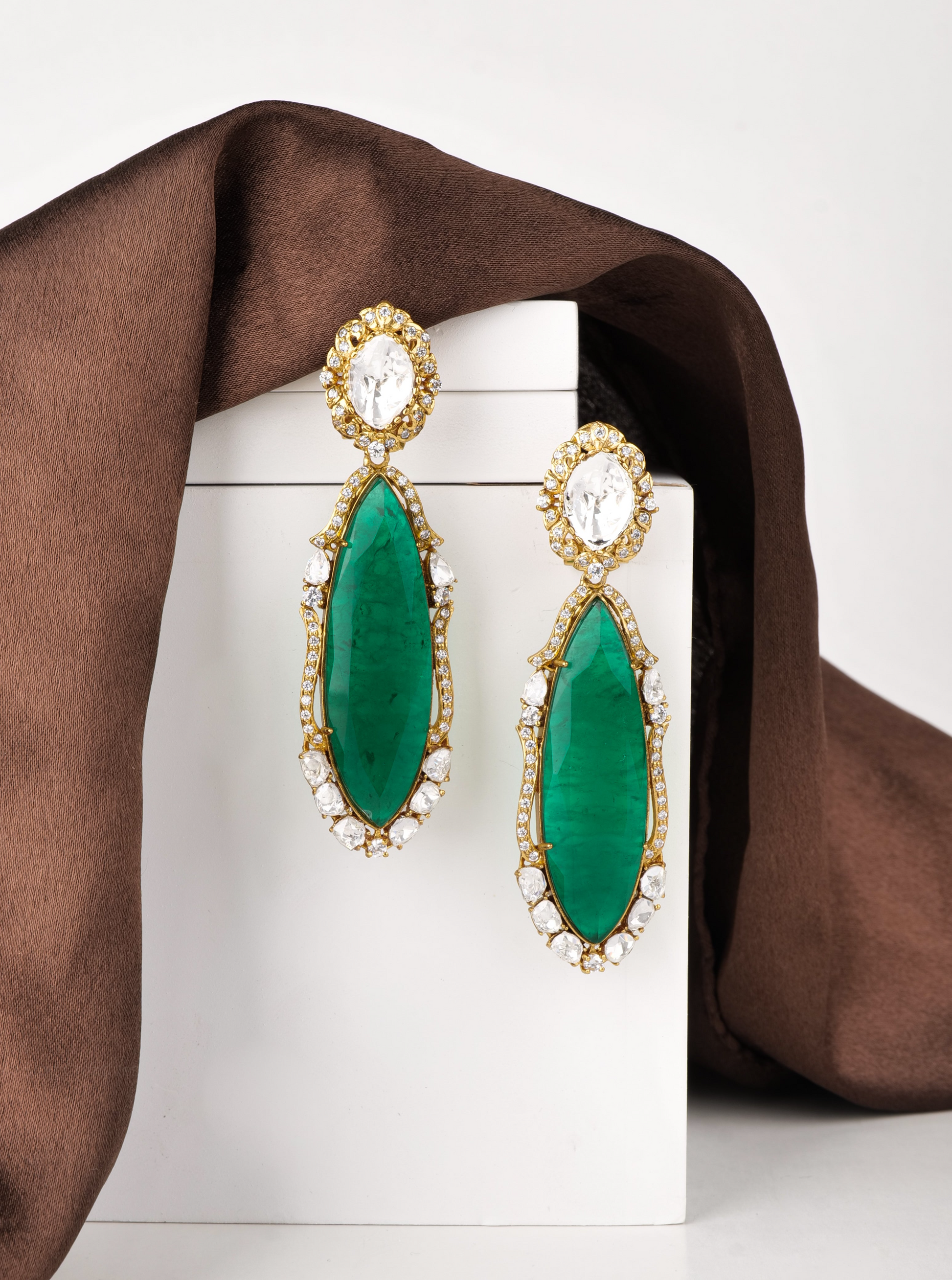 18k gold plated fine quality earrings with natural semiprecious stone, polkis and cubic zircon surroundings.